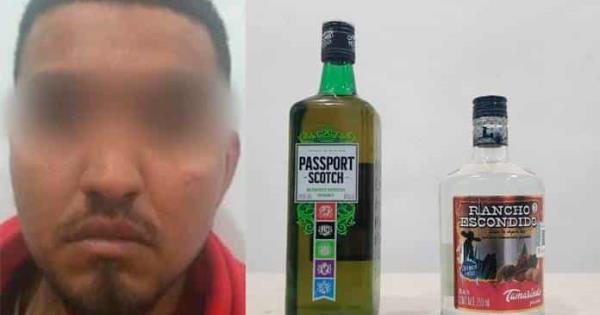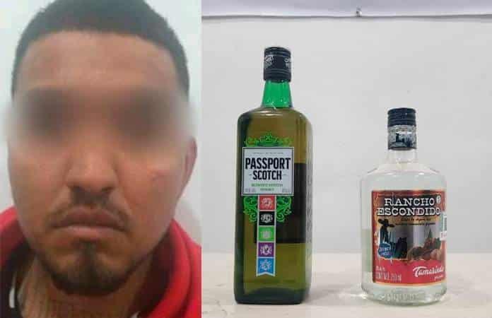 En dicha revisión le fueron encontradas una botella de 700 mililitros de whisky marca Passport Scotch y una botella de 750 mililitros de destilado de agave de marca Rancho Escondido, ambas sumaron un valor de alrededor de 450 pesos, mismos que aseguró no poder pagar, por lo que se le dio lectura de los derechos que el estado le otorga y fue informado que sería detenido por el delito de robo a comercio.
