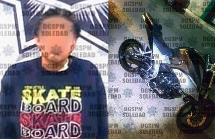 En recorridos de vigilancia, agentes de Seguridad Pública de Soledad detuvieron a un hombre por conducir una motocicleta con reporte de robo vigente, acción que se llevó a cabo en la colonia Privadas de La Libertad.