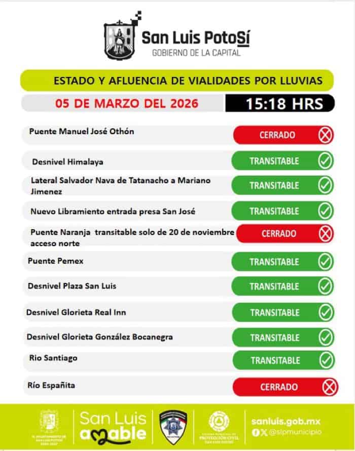 Cierran Río Españita y desnivel Othón tras lluvias