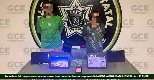 Como resultado de trabajos de inteligencia y operativos coordinados, la Secretaría de Seguridad y Protección Ciudadana del Estado (SSPC) y la Fiscalía General del Estado (FGE) desmantelaron un sistema de videovigilancia ilícita y detuvieron a dos personas en el municipio de Matehuala.