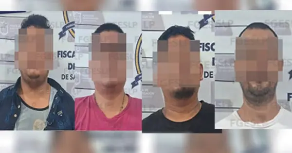 La Fiscalía General del Estado de San Luis Potosí (FGESLP) informó que los detenidos son Jesús “N”, Carlos “N”, Jonathan “N” y Pablo “N“, quienes enfrentan un proceso penal por su probable responsabilidad en el delito de extorsión.