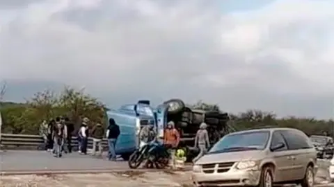 Los hechos cuando el chofer de la unidad pesada con caja acoplada circulaba sobre carretera Zacatecas con dirección a San Luis Potosí; al llegar al kilometro 32 a la altura de la comunidad del Porvenir, dormita perdiendo el control de la unidad cayendo a un desnivel que divide ambos carriles y al tratar de controlar la unidad se vuelca hacia su derecha.