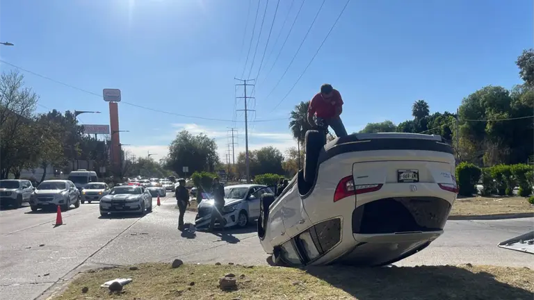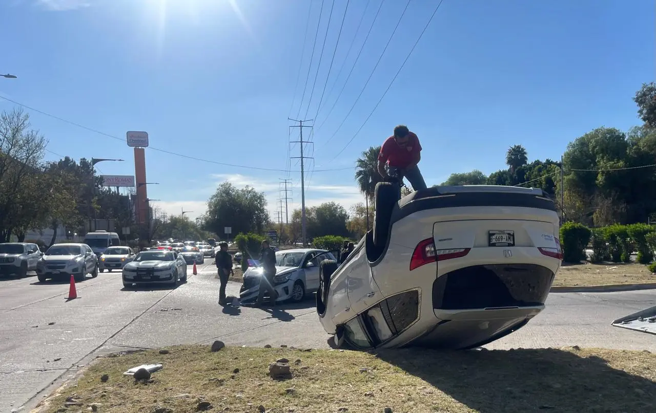 Solo daños tras choque y volcadura en bulevar Río Santiago