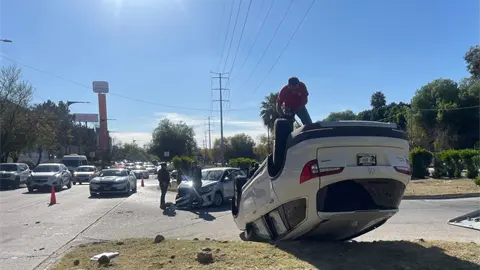 Un choque entre dos vehículos provocó la volcadura de una camioneta la tarde de este jueves en el bulevar Río Santiago, a la altura de Plaza El Dorado, sin que se reportaran personas lesionadas.