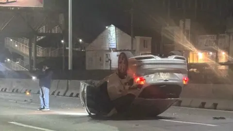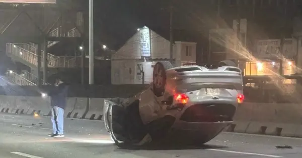 Los hechos se registraron alrededor de las 03:00 horas, cuando un vehículo Ford sedán, color gris, circulaba con dirección al poniente. Al llegar a la altura de la calle La Pedrera, en la colonia Bellas Lomas, el conductor perdió el control hacia su izquierda, impactó contra el muro de contención y volcó, quedando con las llantas hacia arriba.