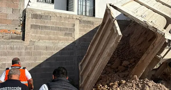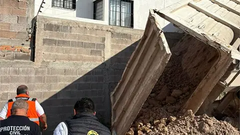 Descargaba tierra cuando se fue sobre las bardas traseras de los inmuebles