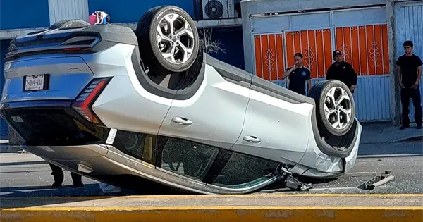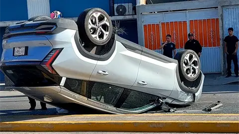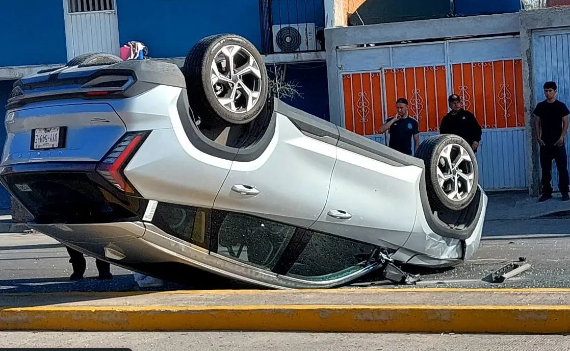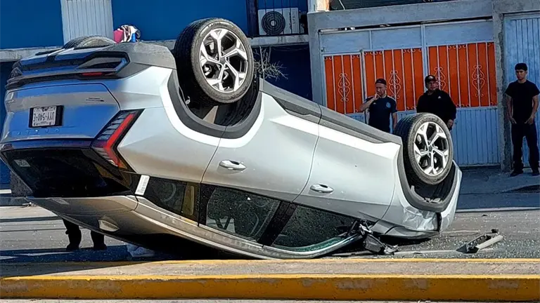 De acuerdo con los primeros reportes, la unidad terminó volcada tras el incidente; el conductor presentó golpes menores que no ameritaron traslado a un hospital.
