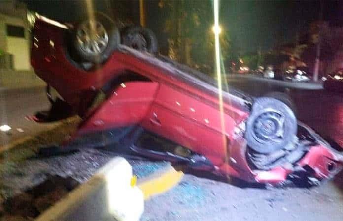 Fue al aproximarse a la colonia El Paseo, en donde el conductor perdió el control del volante y de esta forma chocó contra la guarnición para enseguida volcarse quedando con las llantas hacia arriba parcialmente sobre el camellón central y la superficie de rodamiento.