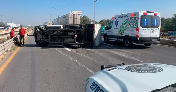 El percance ocurrió alrededor de las ocho de la mañana de este jueves, cuando la camioneta Nissan tipo caja de color blanco, se desplazaba al parecer a alta velocidad por los carriles centrales de la mencionada carretera con dirección al distribuidor Juárez. Fue al llegar a la cima del puente del Eje 128, donde al parecer la unidad tuvo una falla en la suspensión y el conductor perdió el control del volante a la izquierda, para así volcar sobre su costado derecho obstruyendo los carriles a la circulación.