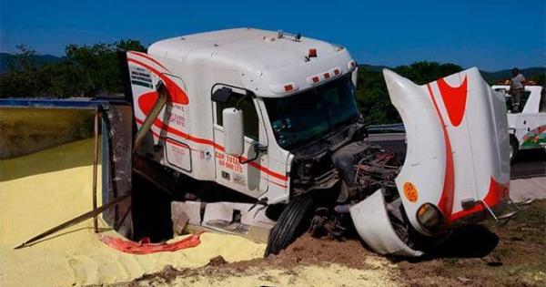 Se trataba de un tráiler color blanco, con un remolque cargado con azufre que es usado como fertilizante; la zona fue acordonada pues aunque no es una sustancia peligrosa, sí es inflamable.