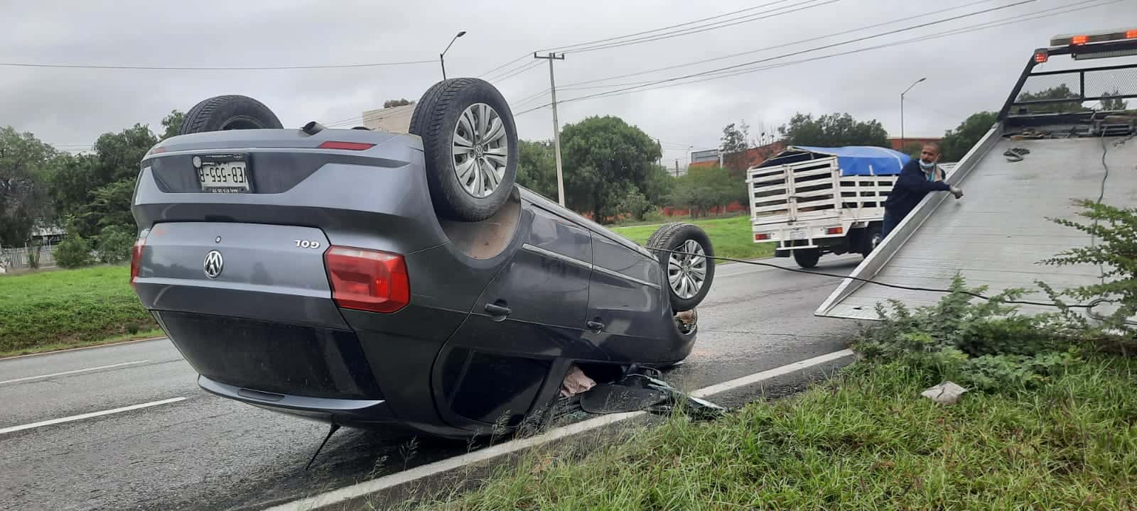 Vuelca vehículo en Carretera 57, solo se reportan daños materiales