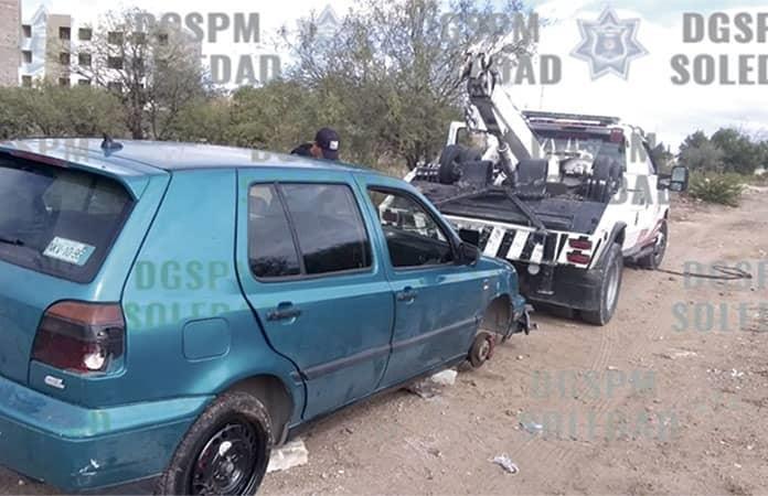En atención a un reporte, agentes de Seguridad Pública de Soledad recuperaron un vehículo con reporte de robo vigente en el fraccionamiento Los Canarios.