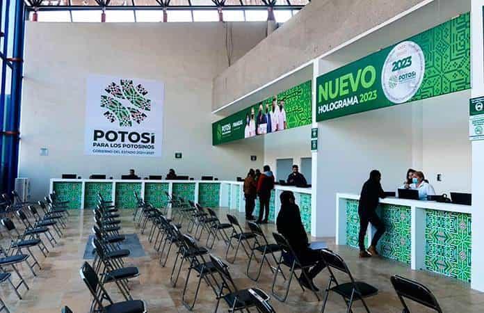 Para despresurizar la entrega de placas pendientes y avanzar con el pago del refrendo anual 2023, se abrirá un macro módulo en las instalaciones de la Feria Nacional Potosina (Fenapo), el cual contará con 20 ventanillas de atención, 10 centros electrónicos o quioscos.