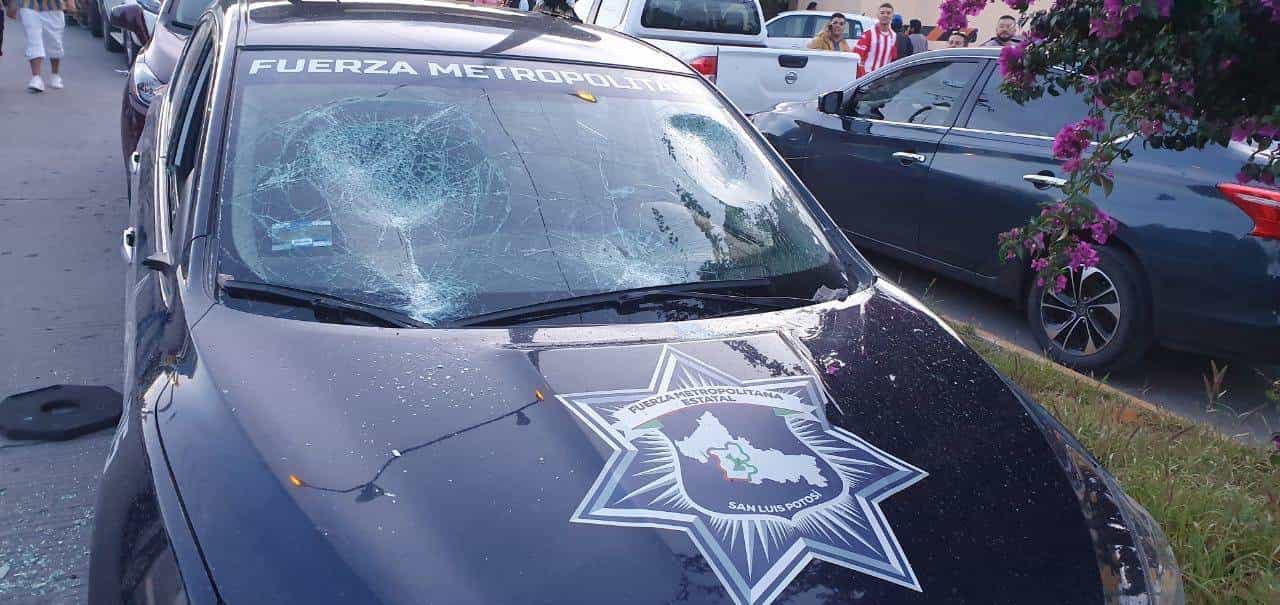 Actos de vandalismo se registraron en las inmediaciones del estadio Alfonso Lastras. Hasta el momento se reportan alrededor de 15 patrullas de la Policía Metropolitana y Municipal dañadas, además de un número indeterminado de carros particulares con algún daño.