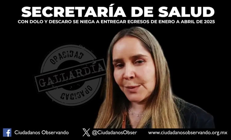 La organización Ciudadanos Observando denunció que los Servicios de Salud de San Luis Potosí, encabezados por Leticia Gómez Ordaz, han omitido publicar los egresos correspondientes a los primeros cuatro meses de 2025, lo que —advirtieron— representa una violación a la Ley de Transparencia estatal.