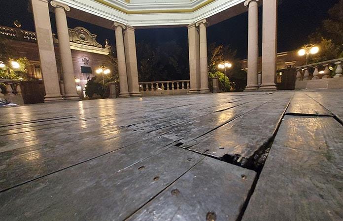 Ya no sirve la duela del kiosco de la Plaza de Armas y su deterioro se suma al desprendimiento de piezas de cantera de la balaustrada.