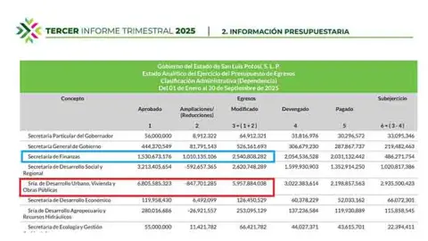 De las afectadas, la Seduvop vio reducida su presupuesto original, de seis mil 805.5 millones de pesos a cinco mil 957.8 millones de pesos, una baja de 847.7 millones de pesos.