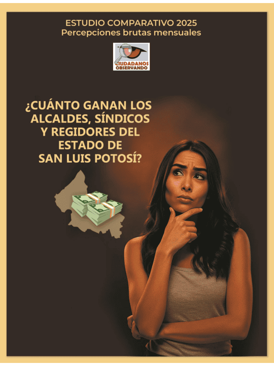Una investigación de la organización civil Ciudadanos Observando reveló que al menos 10 presidentes municipales de San Luis Potosí perciben sueldos brutos mensuales superiores al del gobernador Ricardo Gallardo, cuyo ingreso oficial es de 91 mil 500 pesos.