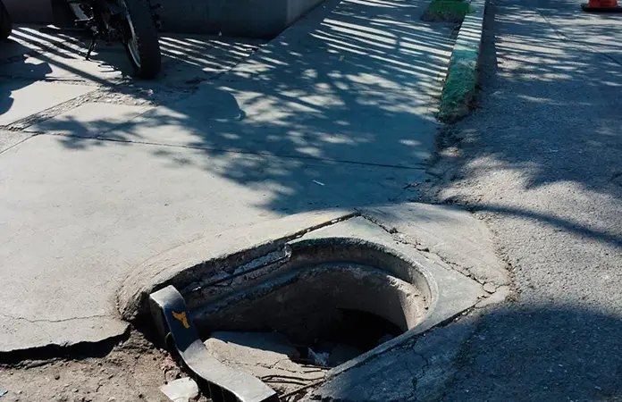 En el cruce de Benito Juárez y Vicente Guerrero, junto a la Unidad de Medicina Familiar (UMF) No. 5 de Soledad, una alcantarilla destruida es una peligrosa trampa cotidiana para cientos de transeúntes de la cabecera municipal. La dependencia responsable de su arreglo, Interapas, sigue sin intervenir en este tema.