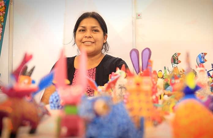 Lizbeth López Ojeda siguió la tradición de su familia en la elaboración de alebrijes y figurillas de copal; actualmente expone sus artesanías en un pabellón de la Feria Nacional Potosina (Fenapo).