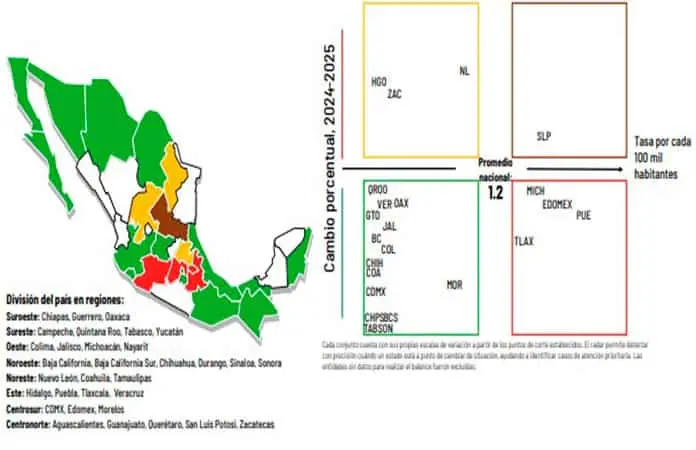En cuanto a la estadística, el reporte de México Evalúa señala que el estado tiene una tasa de 4.3 casos por cada cien mil habitantes, la tercera peor y un alza de 5.9 por ciento, la cuarta más alta.