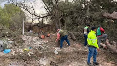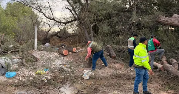 En cuanto a caída de árboles, Protección Civil de Soledad recibió tres reportes. Uno de ellos fue de un árbol de gran altura, aproximadamente 12 metros, que cayó sobre cables de alta tensión, por lo que fue necesario coordinarse con personal de la Comisión Federal de Electricidad (CFE) y del Departamento de Parques y Jardines de Soledad. En este caso, los trabajos comenzaron a las 7:00 de la mañana del sábado y concluyeron a las 12:00 del día.