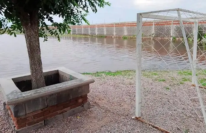 Este martes amaneció el área de canchas junto con los pasillos del colegio, convertidos en alberca de aguas negras, pero ya falta poco para que los salones sean invadidos por el agua.
