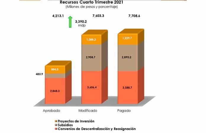 Sin embargo, tras modificaciones presupuestales de la Secretaría de Hacienda y Crédito Público, el dinero entregado creció a siete mil 708.6 millones de pesos.