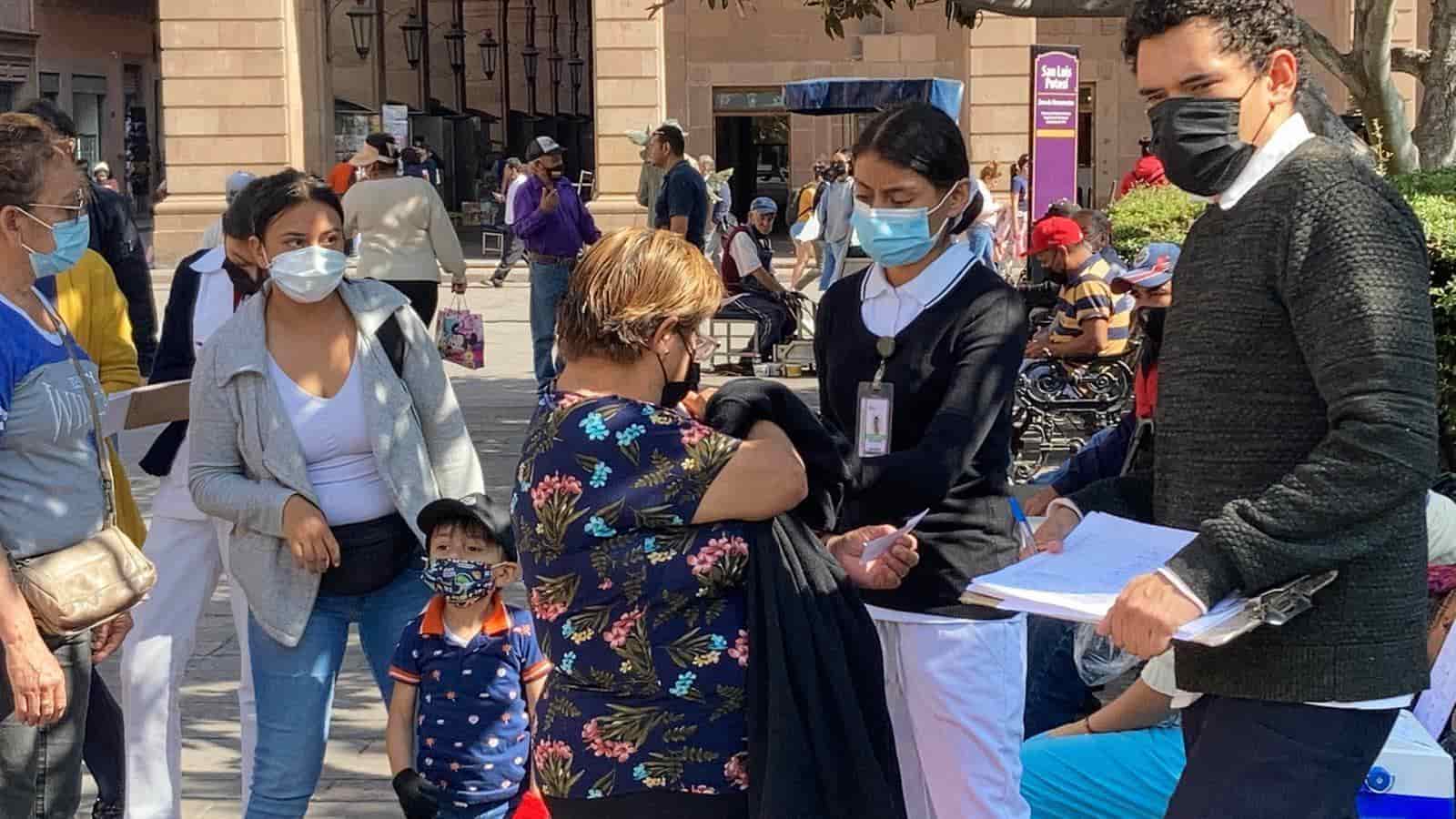 Las encargadas iniciaron su labor desde las 10:00 de la mañana en el costado norte de la plaza y estarán hasta las 13:30 de la tarde. La afluencia de personas es continua, incluso de quienes no cumplen con los perfiles mencionados, a quienes las enfermeras remiten a centros de salud e instalaciones del Instituto Mexicano del Seguro Social (IMSS).