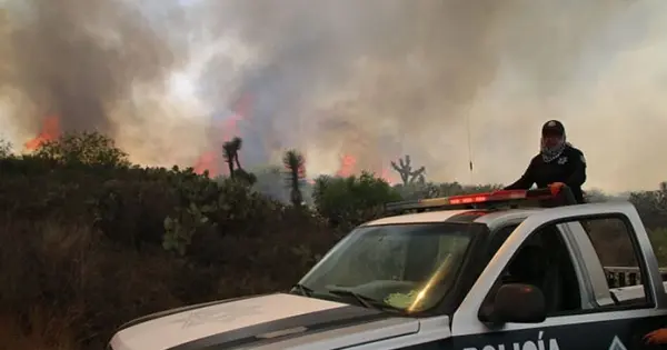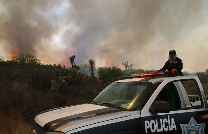 Brigadistas de los tres niveles de gobierno y voluntarios atendieron ayer un extenso incendio forestal que se registró en la comunidad de Derramaderos, en el municipio de Mexquitic de Carmona, informó la Coordinación Estatal de Protección Civil (CEPC).