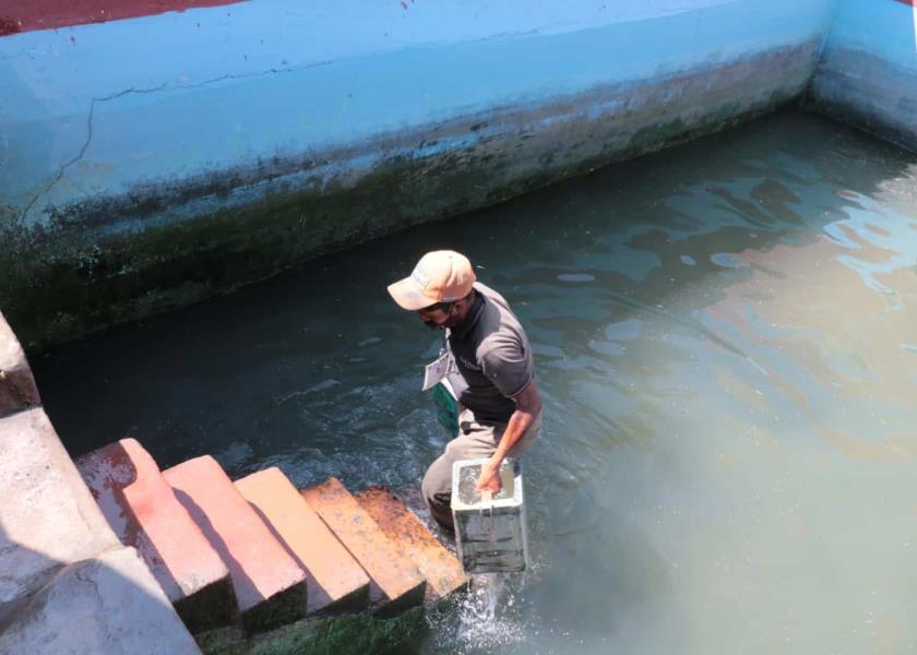 El agua que utilizan del aljibe es agua tratada y previamente fue abastecida por una pipa municipal, allí se suele reunir la concentración de todos los aguadores que trabajan estos días.