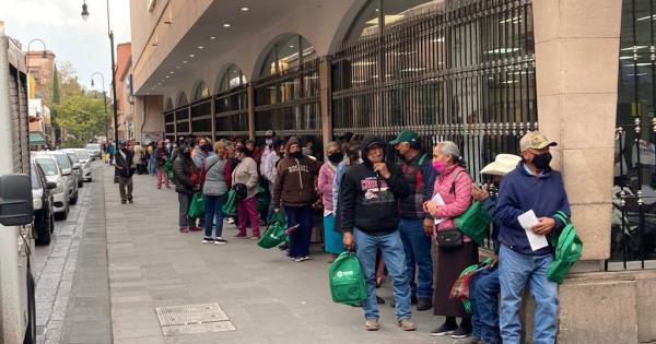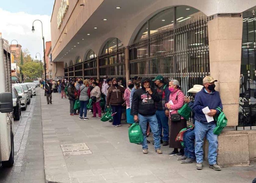 Este miércoles, personas que reciben su pensión a través del "Banco del Bienestar" tuvieron que hacer largas filas durante un tiempo prolongado para recibir su pago o hacer algún otro tipo de trámite en la sucursal del Centro Histórico, ubicada en el cruce de las calles de Ignacio Zaragoza y Agustín de Iturbide.