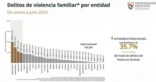 De enero a julio del 2025, el estado de San Luis Potosí registró 5 mil 965 casos de violencia familiar, lo que representa un incremento anual del 3.9 por ciento con respecto al mismo periodo del año pasado, de acuerdo con la información del Secretariado Ejecutivo del Sistema Nacional de Seguridad Pública (SESNSP).