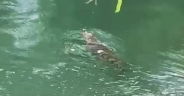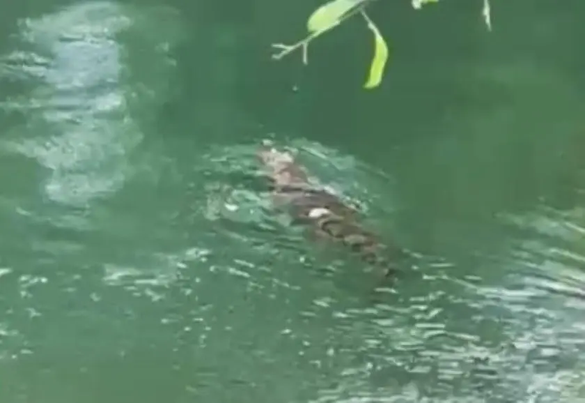 En un vídeo, se observa al cocodrilo nadando en una parte profunda del famoso lugar de recreo y de esparcimiento, conocido también como "El Verde".
