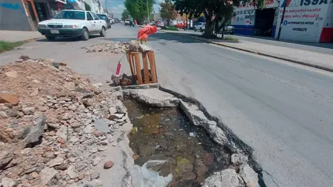 Ante esta situación, comerciantes de la zona tuvieron que delimitar la zona a fin de prevenir a los conductores que transitan por esta vialidad, así como rellenar con escombro los mismos a fin de disminuir los riegos que pueden llegar a causar.