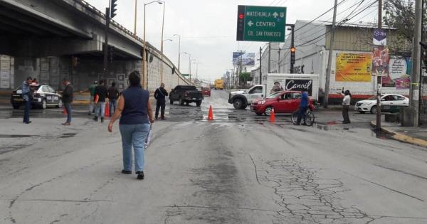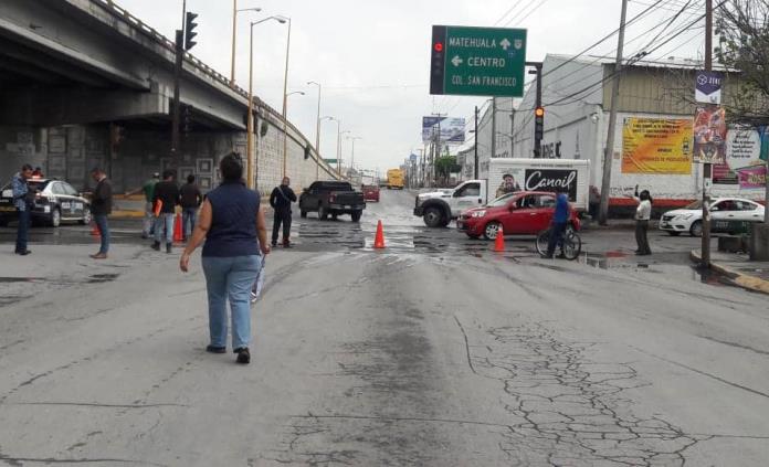 Ciudadanos de las colonias Ferrocarrilera y Popular bloquearon la avenida Valentin Amador y carretera Matehuala, donde se quejaron de drenajes colapsados que no se han atendido por el Interapas.