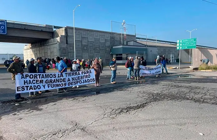 Los ejidatarios y comuneros representados por sus abogados, cumplieron su advertencia, colocada en la señalización vial unos días antes. Hace dos semanas, también colocaron algunos avisos de reclamo al Gobierno del Estado, en los que pedían que el gobierno se ponga al corriente con los pagos pendientes a ejidatarios y comuneros de toda la franja, tanto de la capital como de Villa de Reyes y Villa de Arriaga.