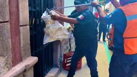 Bomberos rescataron de una vivienda de la calle Comonfort, en el Centro histórico, una culebra que se movía por las protecciones.