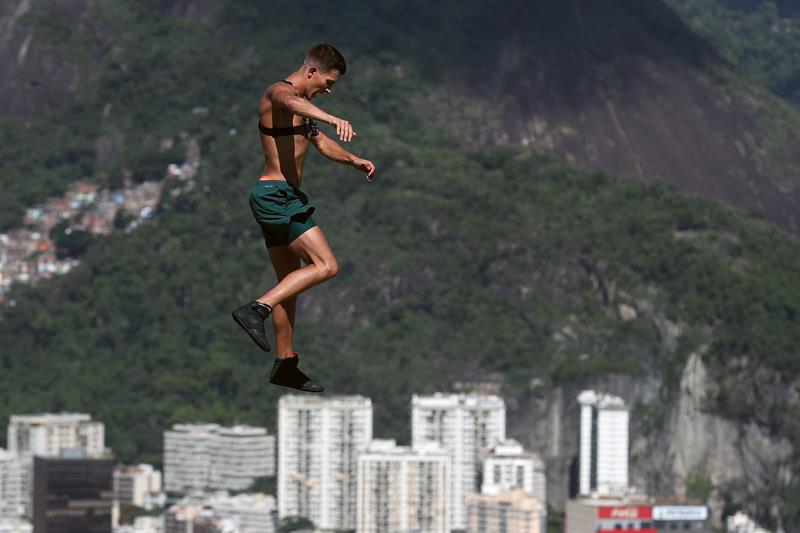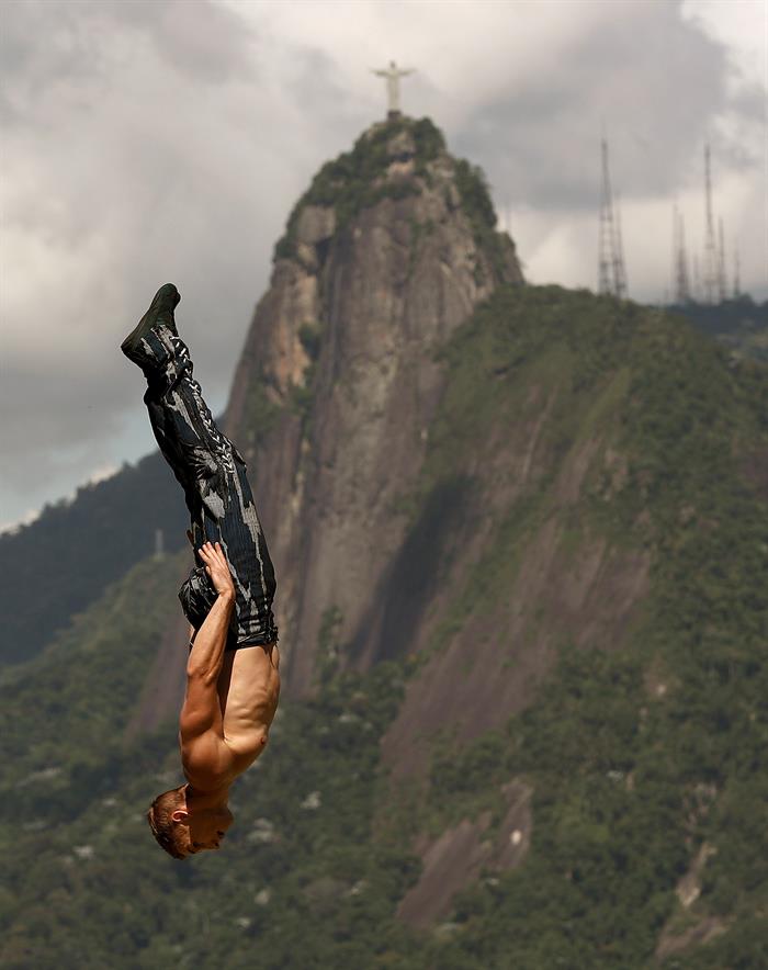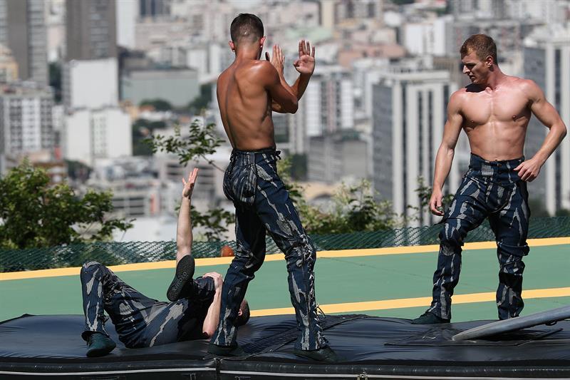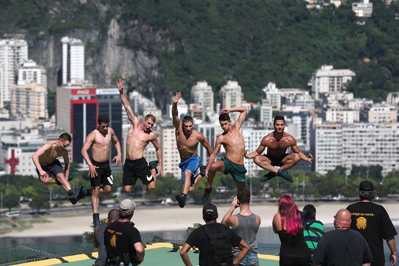 La presentación, parte de la promoción del espectáculo Amaluna que el Circo del Sol estrena en Río, reunió a decenas de invitados y un reducido grupo de prensa y sorprendió a los numerosos turistas que visitaban hoy el Pao de Acucar, en el Morro de Urca.