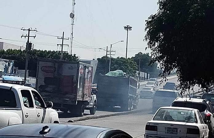 Ante la ausencia de programas de control de emisiones contaminantes, por la ciudad circulan numerosos camiones materialistas, de reparto y de pasajeros que lanzan densas nubes de humo por sus escapes, sin que autoridad alguna impida este atentado contra el aire que las y los potosinos respiran a diario.