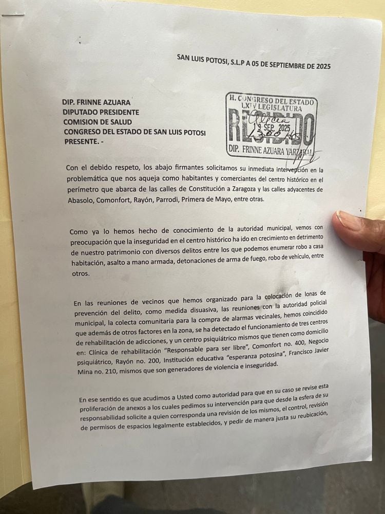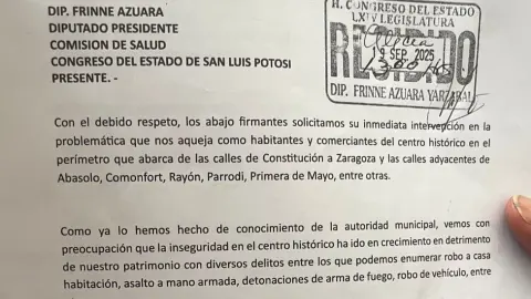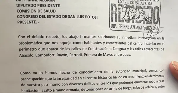 El presidente local de la Cámara Nacional de Comercio en Pequeño (Canacope), Armando Reyes Sías, entregó un oficio al Congreso del Estado firmado por comerciantes y vecinos del Centro Histórico, en el que solicitan mayor seguridad y vigilancia ante el aumento de delitos en la zona y acciones para impulsar la economía formal.