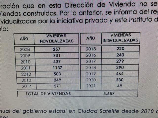 Pese a haber recibido en 2007 cien millones de pesos de apoyo federal para subsidiar la individualización de tres mil viviendas iniciales en Ciudad Satélite, catorce años después las viviendas entregadas no llegan a seis mil unidades.