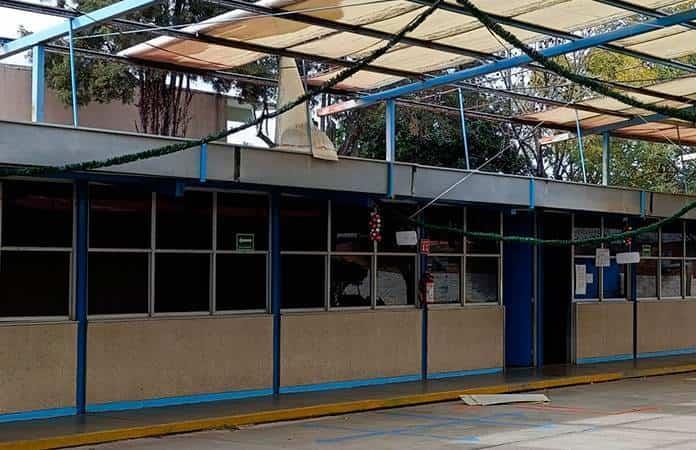 El domo del plantel educativo que se localiza en la calle Juan Antonio Mateos número 150, fue construido con lámina acanalada de fibra de vidrio y de manera progresiva sus piezas han envejecido, hasta el grado de que el viento desprendió algunas que cayeron en lugares vecinos o en su caso también en el interior del plantel.
