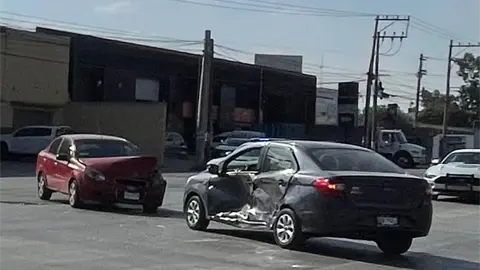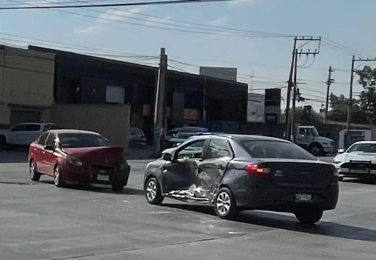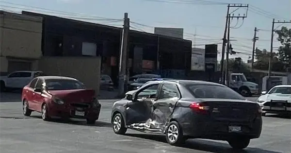 El incidente ocurrió alrededor de las 16:00 horas, cuando un vehículo Kia gris que circulaba sobre el Eje 108 intentó incorporarse a la avenida Industrias y fue impactado por un Chevrolet Aveo rojo.