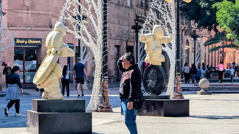 El titular de la Dirección de Servicios Municipales del Ayuntamiento de San Luis Potosí, Christian Azuara, informó sobre el robo y vandalismo de los adornos navideños colocados en las esculturas de Timoteo "Timos", ubicadas en Plaza de Armas, a las que se les habían instalado gorros y bufandas con temática decembrina.
