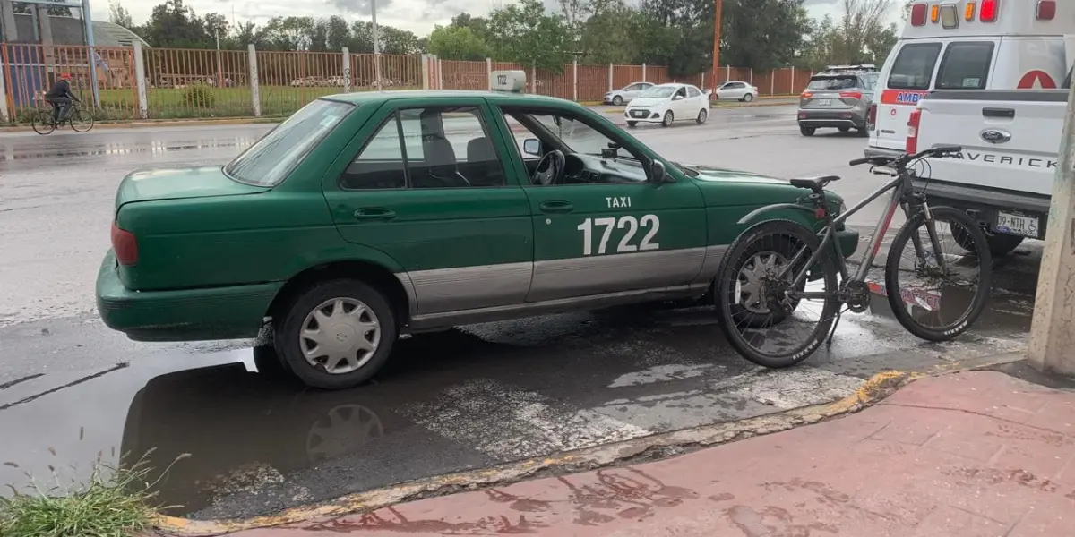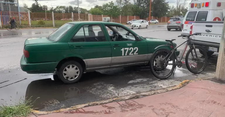 San Luis Potosí, S.L.P. – Una mujer que circulaba en bicicleta fue atropellada por un taxi la tarde de este jueves en la intersección de avenida México y calle Morelia, en la colonia Ferrocarrilera.