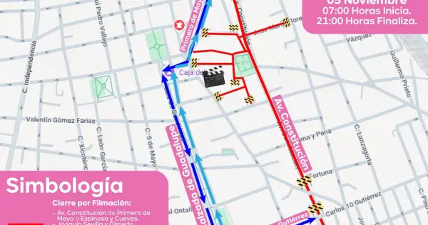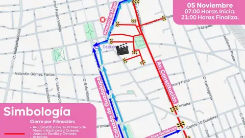Mañana, miércoles 5 de noviembre, se llevará a cabo un operativo de cierre vial en varias calles del centro de la ciudad con motivo de la grabación de la telenovela Mi Rival. El horario del cierre será de 07:00 a 21:00 horas.