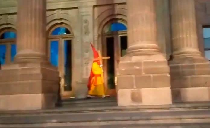 Solitario Cofrade realizó un recorrido para recordar la tradicional Procesión del Silencio, que durante 66 años se había llevado a cabo en las calles del Centro Histórico de San Luis Potosí y que por primera ocasión tuvo que ser suspendida por la pandemia de coronavirus.