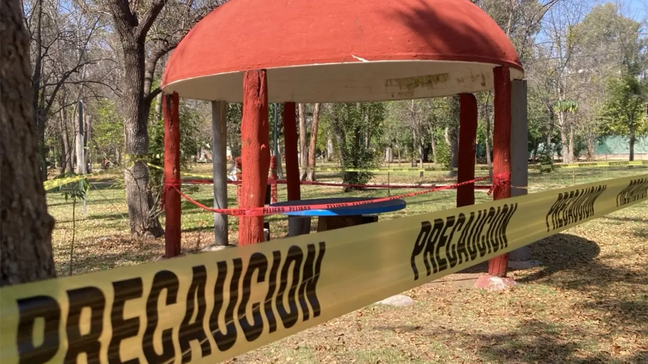 El incidente se registró cuando una pelota impactó accidentalmente contra la estructura del quiosco, cuyo techo de ladrillo en forma de domo presentaba un evidente deterioro. Tras el golpe, la techumbre se vino abajo y cayó sobre el menor.