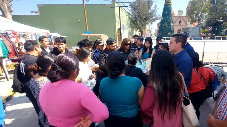 Un grupo de comerciantes sostuvo esta mañana un intercambio acalorado con personal y directivos del área de Comercio en Villa de Pozos, luego de que se les negara la asignación de espacios en las calles principales de la cabecera municipal para instalar sus puestos durante la temporada decembrina.